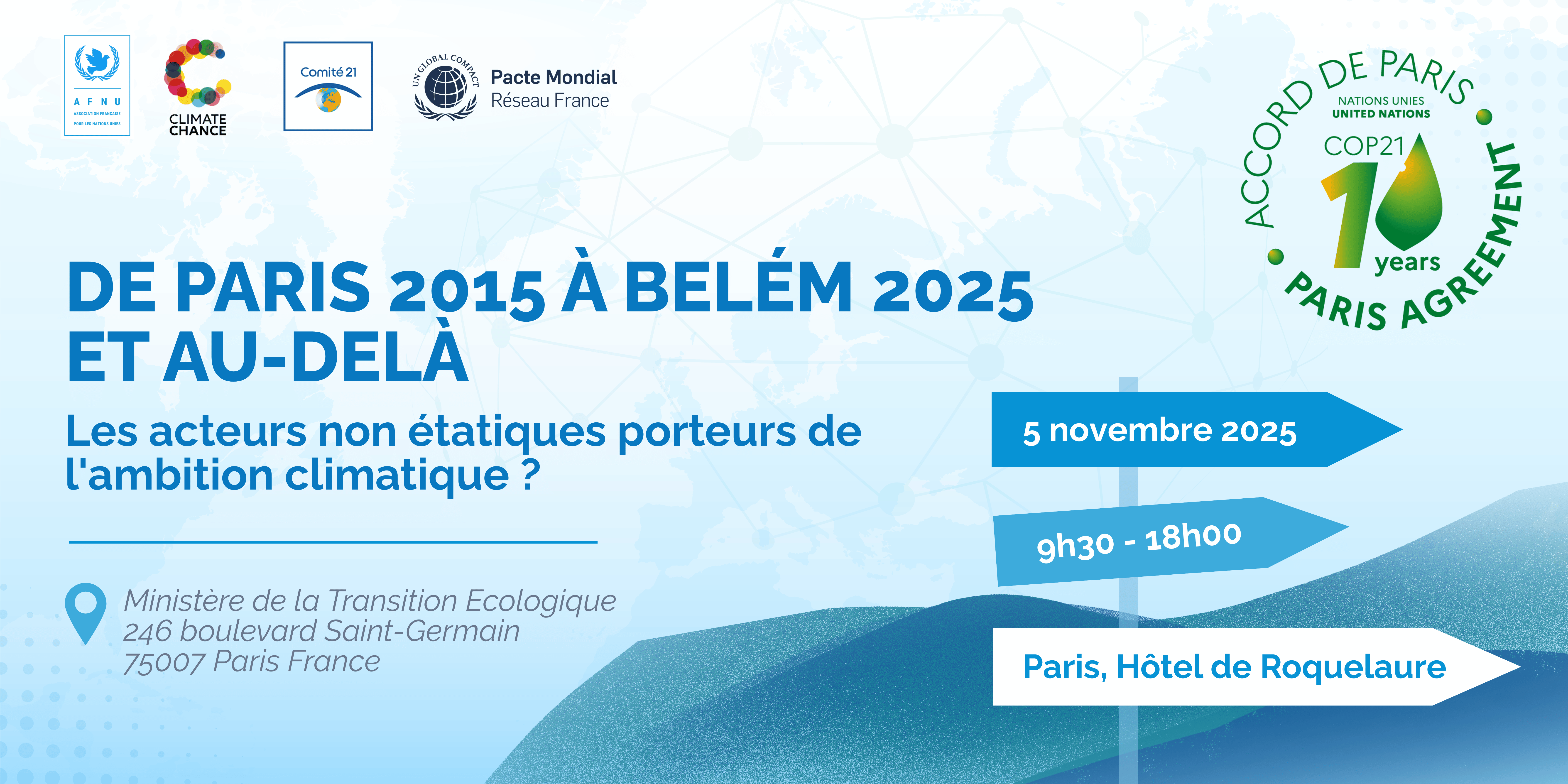 Comment mieux faire converger les efforts pour accélérer l’action climatique et renforcer la résilience des territoires face aux bouleversements en cours ? 10 ans après l'Accord de paris et à la veille de la COP 30, un événement pour mettre en avant le rôle des acteur non étatiques dans la lutte climatique.