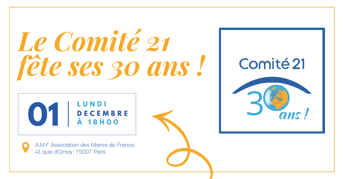 Rejoignez-nous le 1er décembre 2025 pour fêter les 30 ans du Comité 21 ! Pour marquer cet anniversaire, une soirée événement réunira collectivités, entreprises, établissements d’enseignement supérieur et de recherche et associations afin de revenir sur les avancées de ces 30 dernières années et d’ouvrir ensemble la réflexion sur les nouveaux défis à relever.
